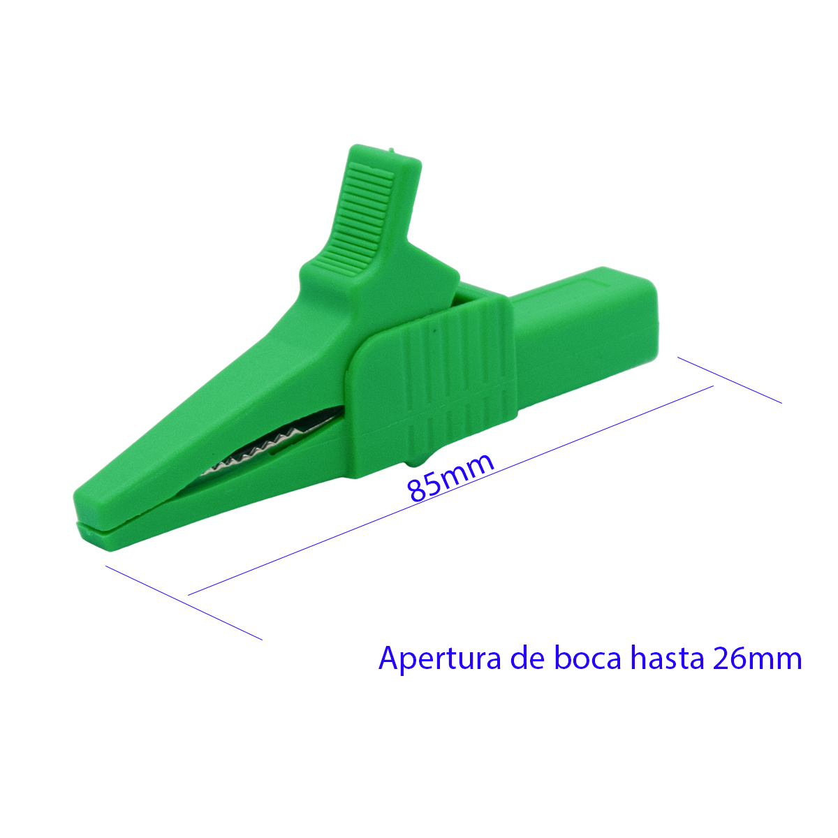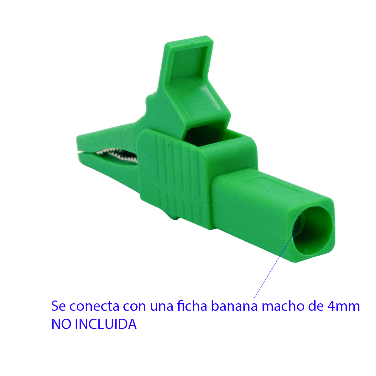(COCO-85-V) Pinza Cocodrilo Aislada 85mm 1KV 32A coneccion Banana Hembra 4mm Verde