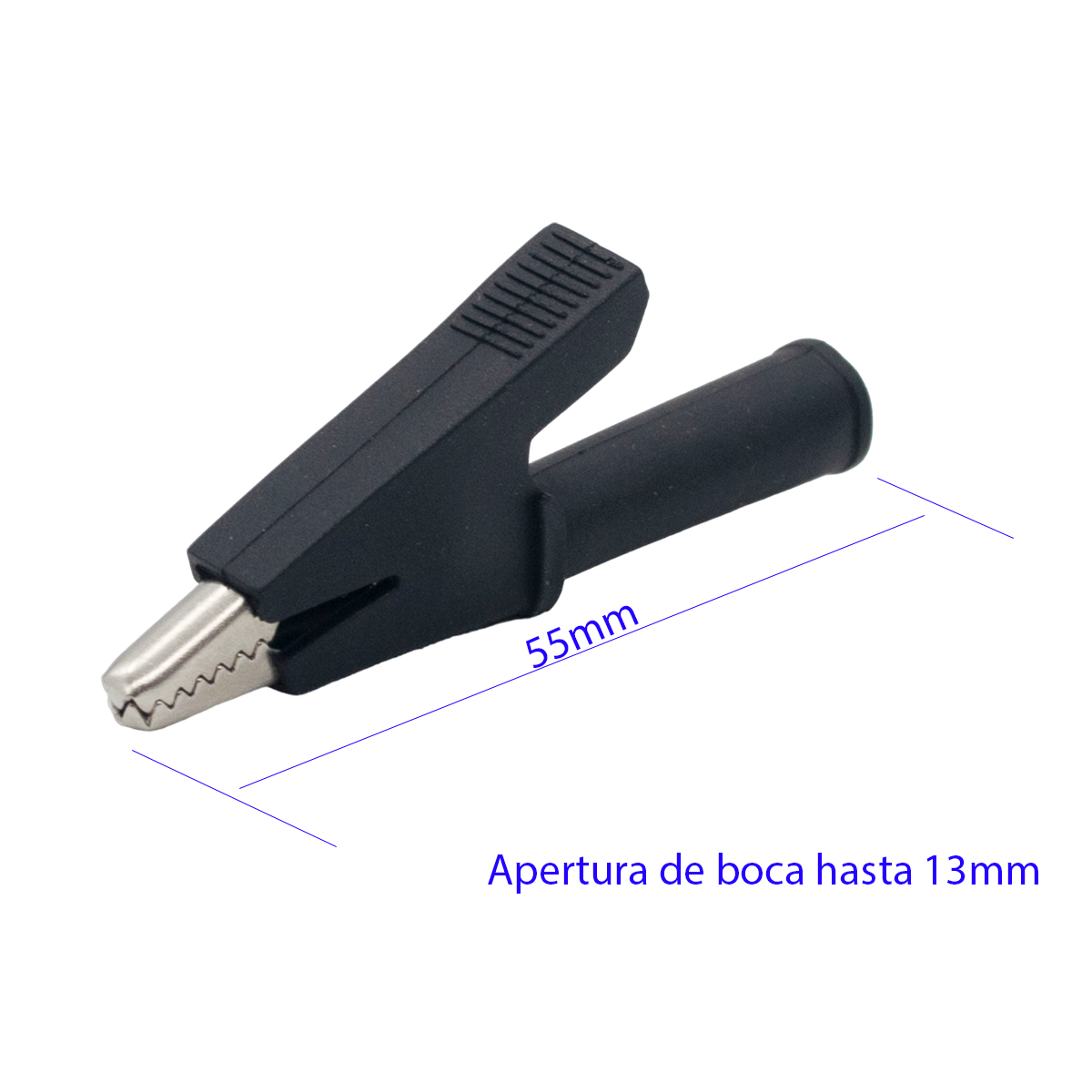 (COCO-55-N) Pinza Cocodrilo Aislada 55mm Negra Coneccion Banana Hembra 4mm