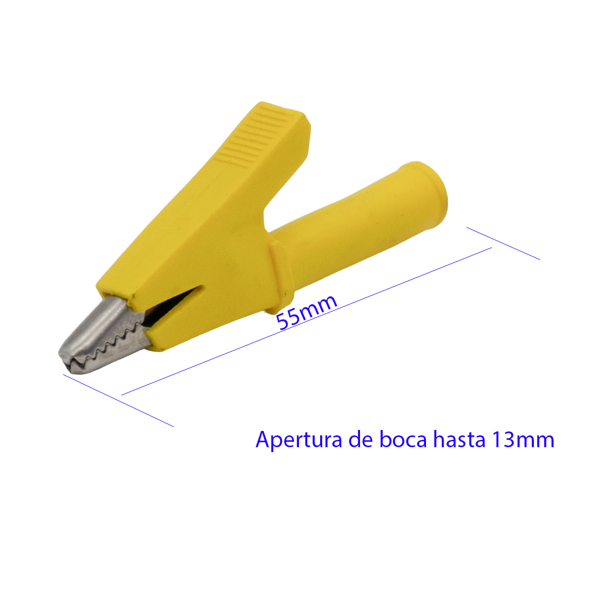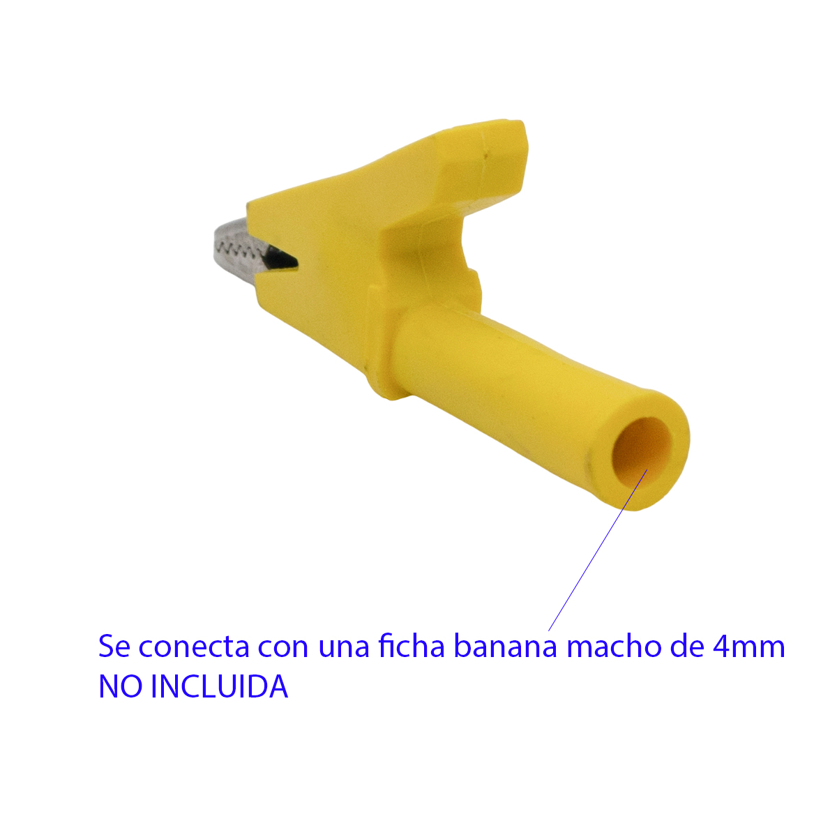 (COCO-55-AM) Pinza Cocodrilo Aislada 55mm Amarilla Coneccion Banana Hembra 4mm