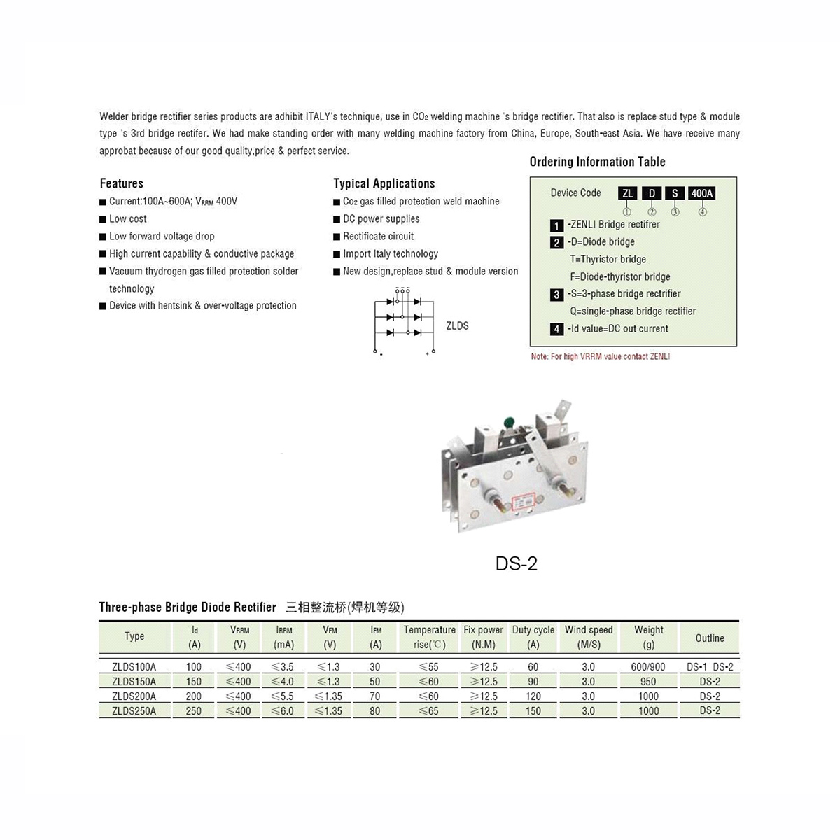 (ZLDS150A) Puente de diodos 150A 400V TRIFASICO, 198x98x120mm